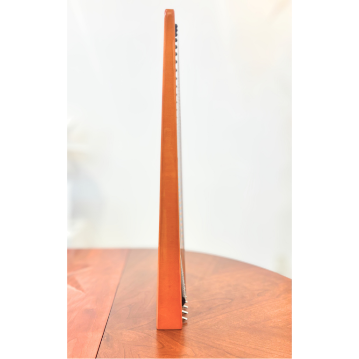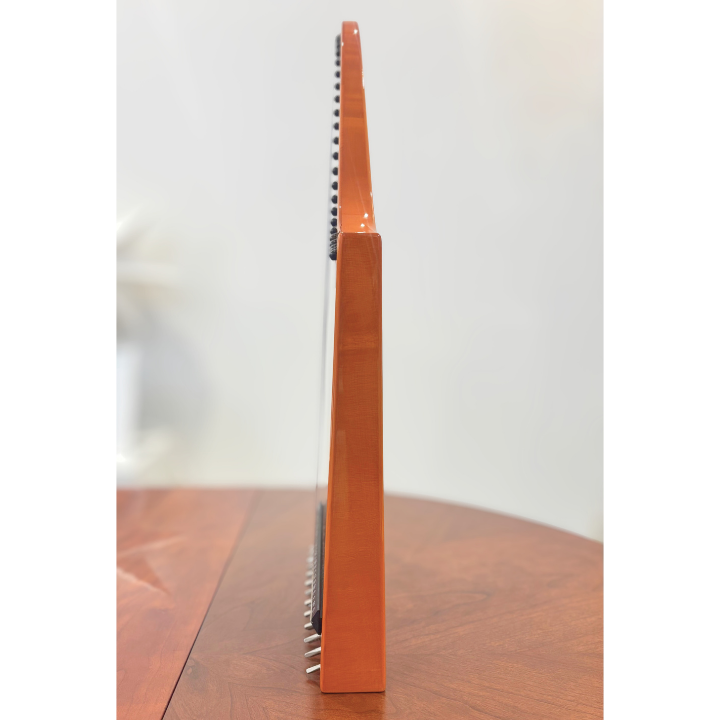 しっかりと整備された日本ヘルマンハープの認定中古ハープ、ローレライ・ゴールド Mタイプです。高級塗装を施したモデル。湿度変化の影響を受けにくいアクリルラック仕上げです。伸びやかな音の広がりを実現する、ロゼッタが表板に施されています。